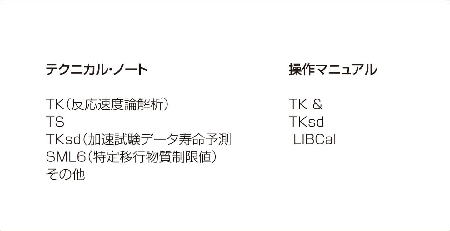 AKTS社は2024年4月からTK,TKsd,TS,TAdm,SML6に加えて,6番目の新製品”DSC-ARCパッケージ"を発表しました。今までは昇温速度1,2,4,8K/minのDSCデータからARCデータから算出可能なTMRやSADTの解析することでした。” DSC-ARC”機能はDSCデータ1点とARCデータ1点から、より妥当性のあるTMRやSADTを予測することが可能です。DSC-ARCの簡単な紹介は次の AKTSの”DSC-ARC”の紹介をクリックします。しばらくして英文のHPが表示されたら右クリックで日本語翻訳を選択してください。AKTSのHPが日本語表示になります。DSC-ARCの情報は追ってHPに掲載しますがAKTS ”DSC-ARC”のページは現時点(2024_04_15)で公開準備中です。 AKTSのHPはそれぞれのパッケージに対して、応用事例に対応したApplication-note(パワーポイント)を掲載するようになりました。これら応用事例はそのまま解析操作マニュアルにも使えるように編集されています。これらのパワーポイント・ファイルは当社のHP上から和訳versionを順次ダウンロードできるようにします。ご期待ください。