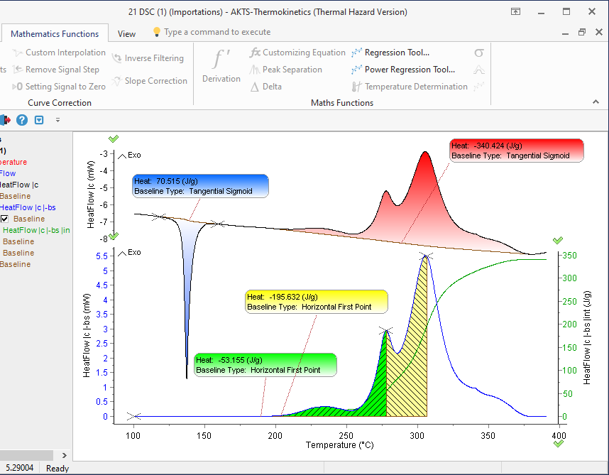 複数の熱イベントが重なった複雑なピークも、TAdmの高度な分離アルゴリズムにより個々の反応へと明確に分解。重なり合った熱挙動の解釈を可能にし、材料特性や反応機構の理解を大きく前進させます。