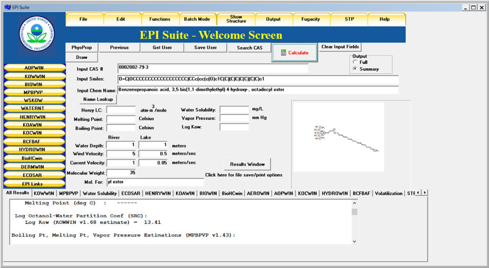 EPI Suite を利用すると、AKTS_SML のデータベースに登録されていない物質についても、Log Pow 値を検索することが可能です。